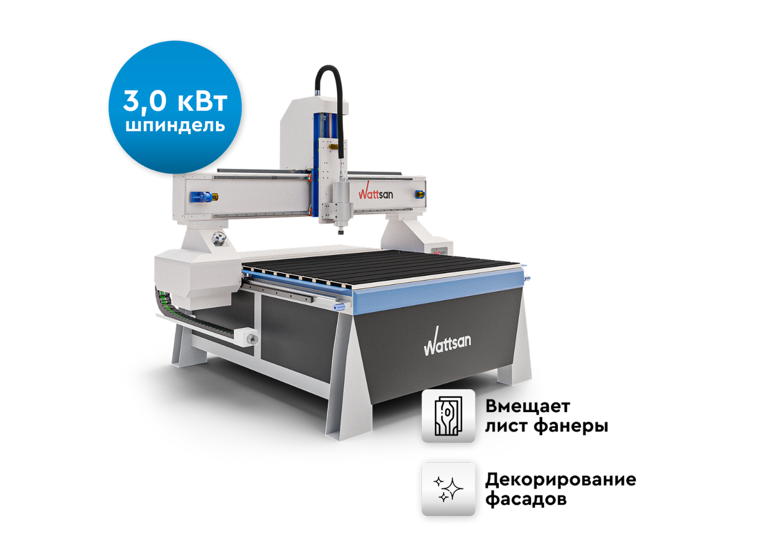 Все станки Wattsan имеют высокотехнологичную конструкцию рамы. Цельносварная станина станка обеспечивает нужный уровень жесткости и виброустойчивости.