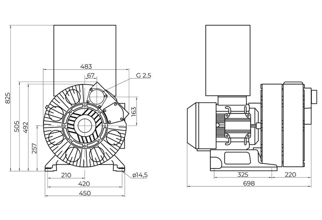 Вихревая воздуходувка — низконапорный компрессор динамического действия. Сжатие воздуха происходит за счёт завихрения потока вращающимся рабочим колесом с плотно расположенными лопатками. Воздух, проходя через камеру сжатия, многократно ускоряется и получает дополнительную энергию, что обеспечивает стабильную и непрерывную подачу без помпажа.