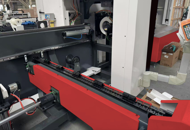 Станок полностью оснащен сервоподдержкой трубы — как в зоне загрузки, так и в зоне приемного стола. Это предотвращает провисание и обеспечивает надежную поддержку даже для труб нестандартных форм.