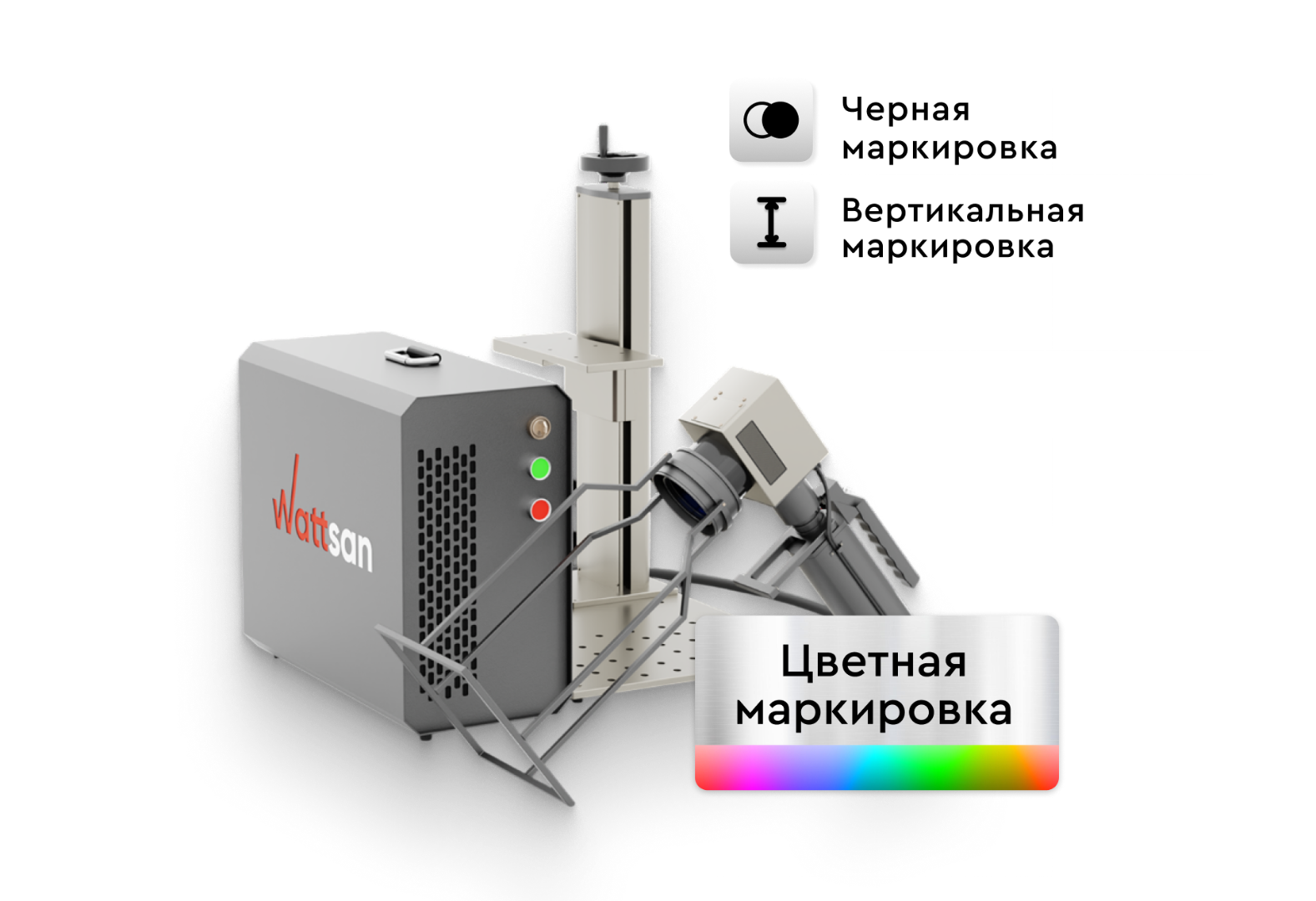 Wattsan FL HH — волоконный лазерный маркер с переносным сканатором. Предназначен для нанесения надписей и изображений на металлы, пластики и некоторые неметаллические поверхности.