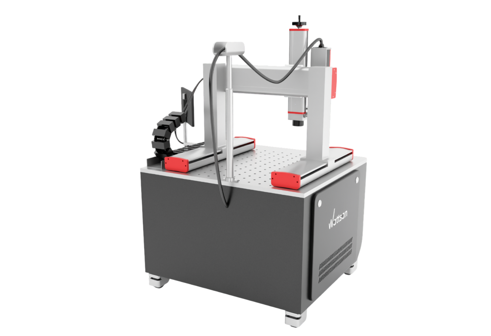 Лазерный маркер Wattsan UV GT (Gantry Type) — портальный ультрафиолетовый лазерный маркер с неограниченной областью маркировки, благодаря модулям перемещения, на которых расположен сканатор, и системе управления Syntec Marking.