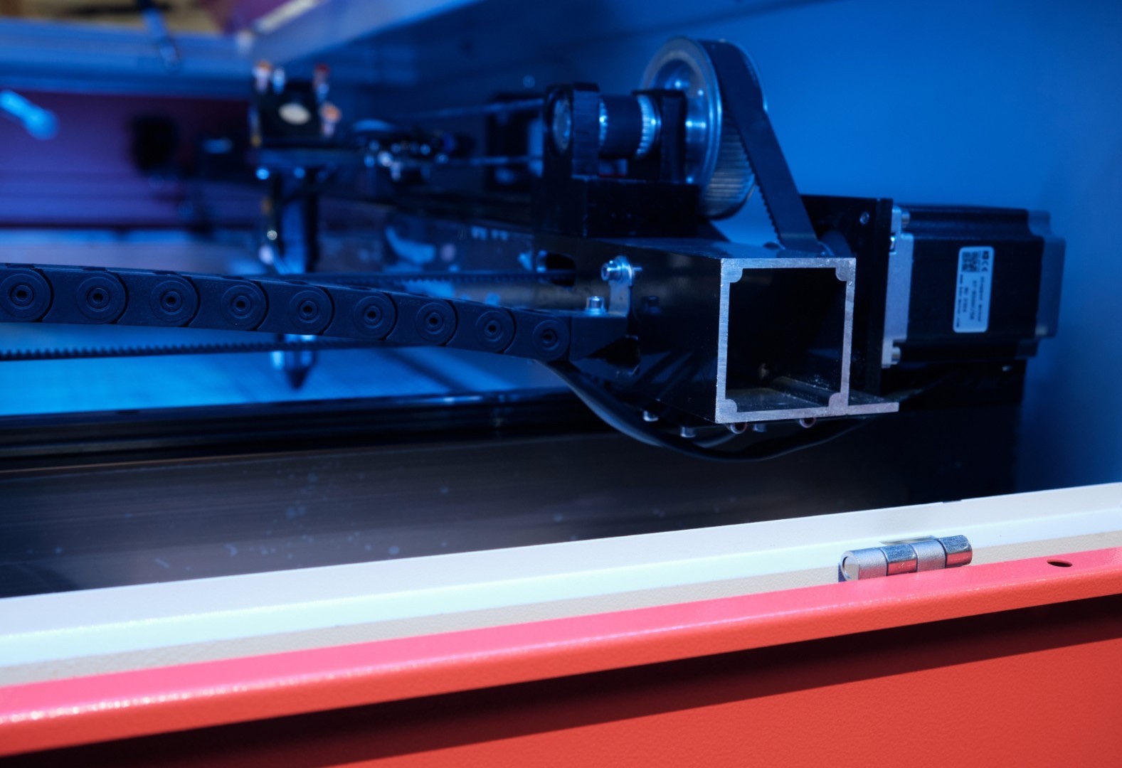 Мы специально заменили двухфазные шаговые двигатели на трехфазные. Это позволило уменьшить величину шага относительно аналогов и значительно увеличить качество гравировки, а также улучшить плавность хода, что особенно актуально при резке акрила и толстой фанеры.