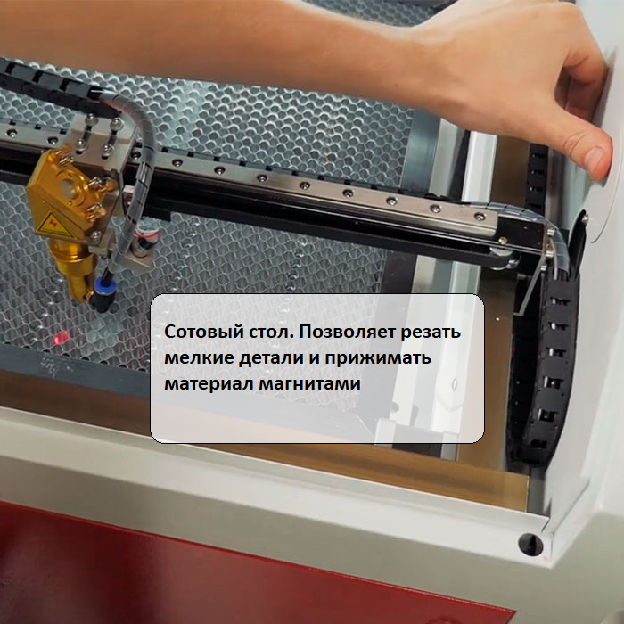 Покрытие стола выполнено в форме сот и максимально удобно для работы с мелкоформатными заготовками.