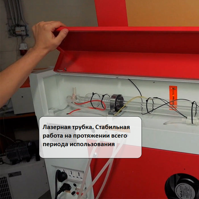 Мощность лазерной трубки составляет 50 Вт, что позволяет быстро и с высокой точностью выполнять сквозную резку поверхностей толщиной порядка 5-6 мм.