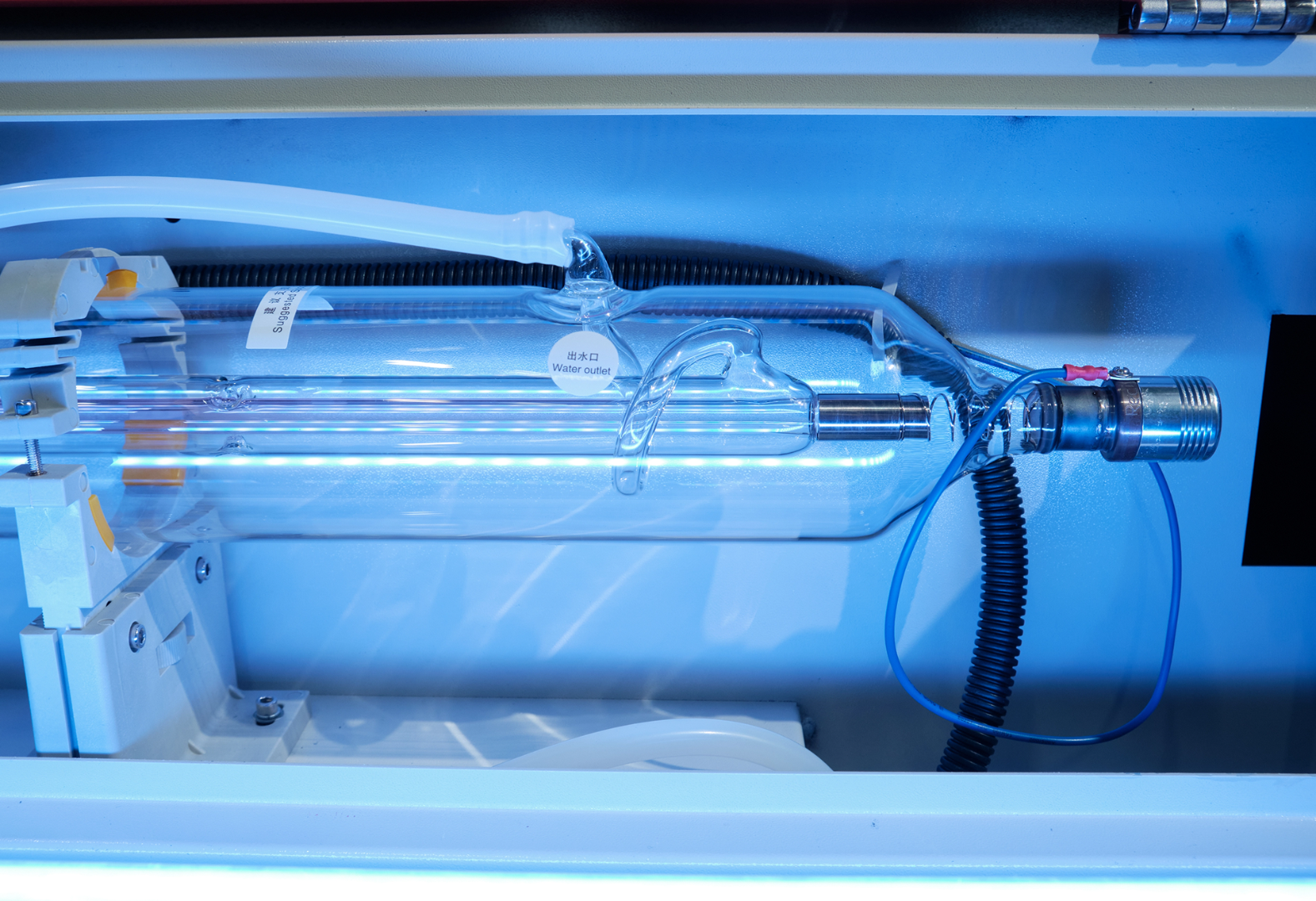 Мы установили универсальные крепления для лазерной трубки, которые оборудованы регулировочным винтом и измерительной шкалой, что позволяет производить их быструю замену вне зависимости от диаметра/мощности трубки и оперативно осуществлять юстировку станка.
