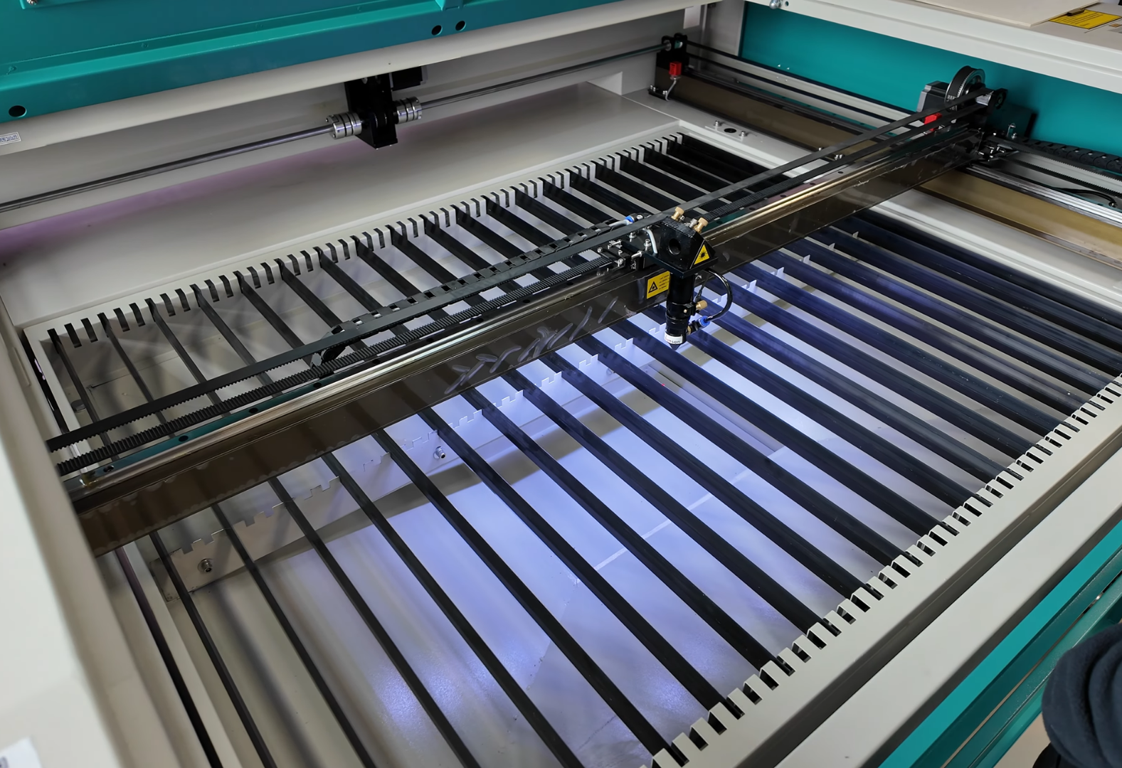 Порталы на лазерных станках Wattsan изготавливаются из алюминия толщиной от 3 до 5 мм и имеют дополнительные ребра жесткости, что обеспечивает долговечность работы.