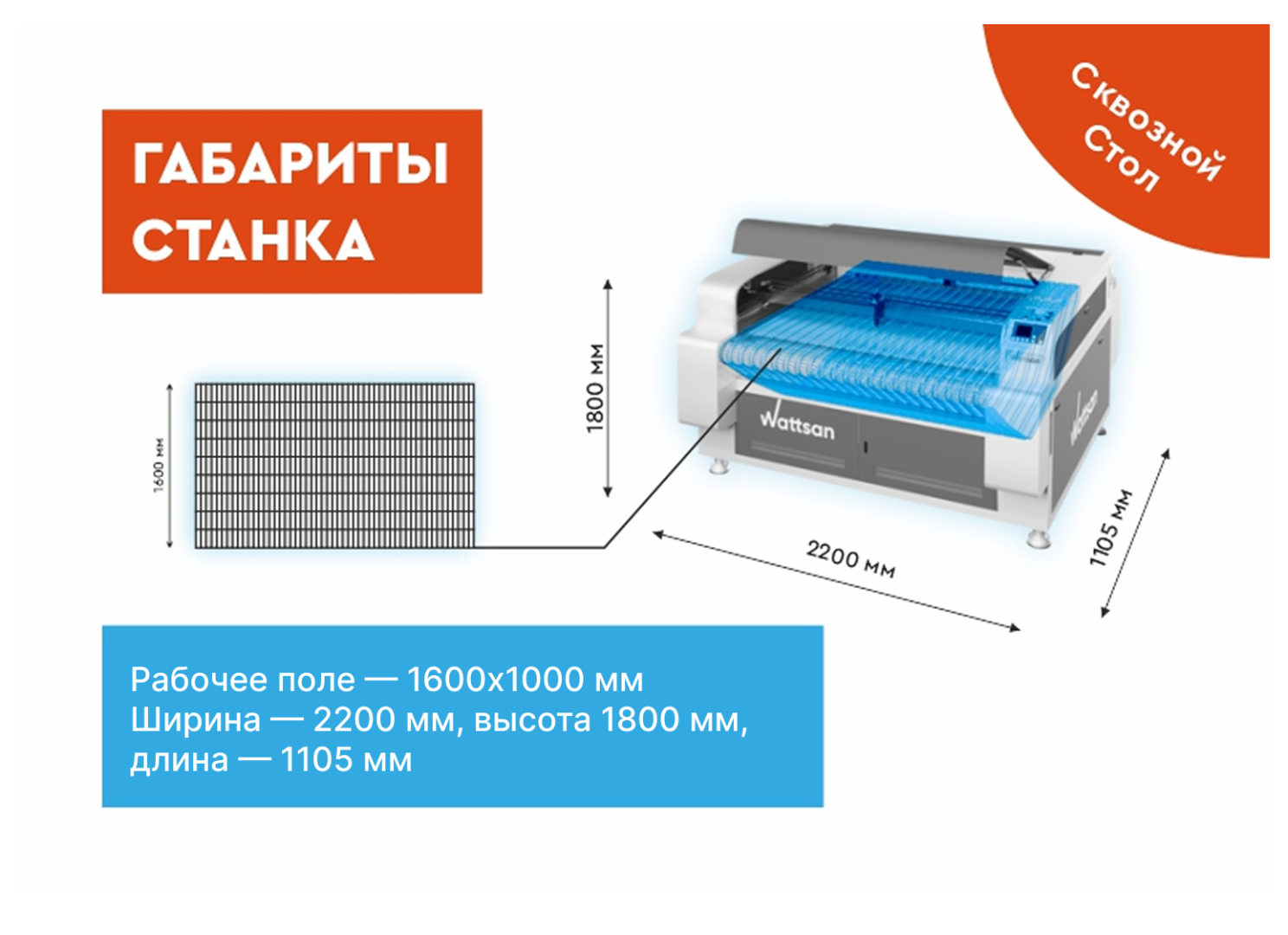 Порталы на лазерных станках Wattsan изготавливаются из алюминия толщиной от 3 до 5 мм и имеют дополнительные ребра жесткости, что обеспечивает долговечность работы.
