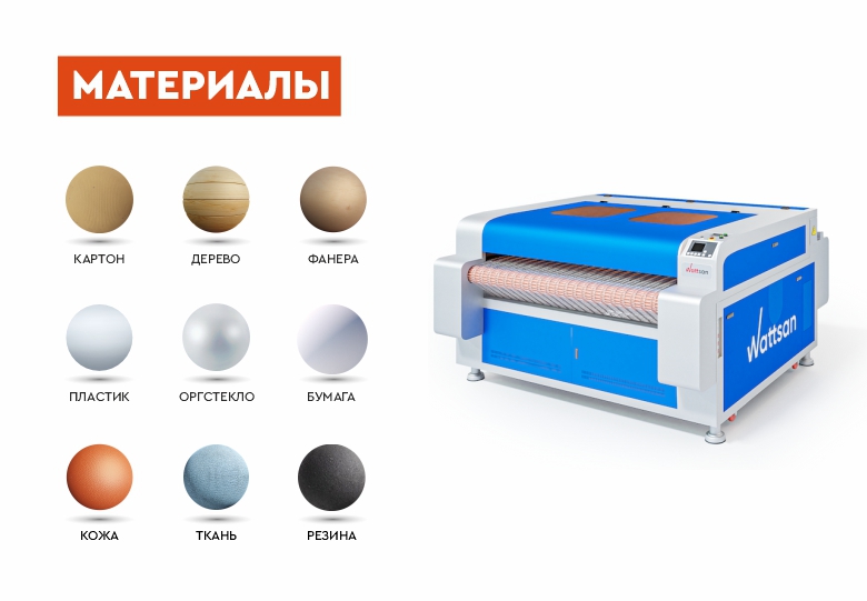 Среднеформатный лазерный станок WATTSAN 1610 Duos conveyer предназначен для потокового раскроя ткани, кожи, кожзама и других рулонных материалов.