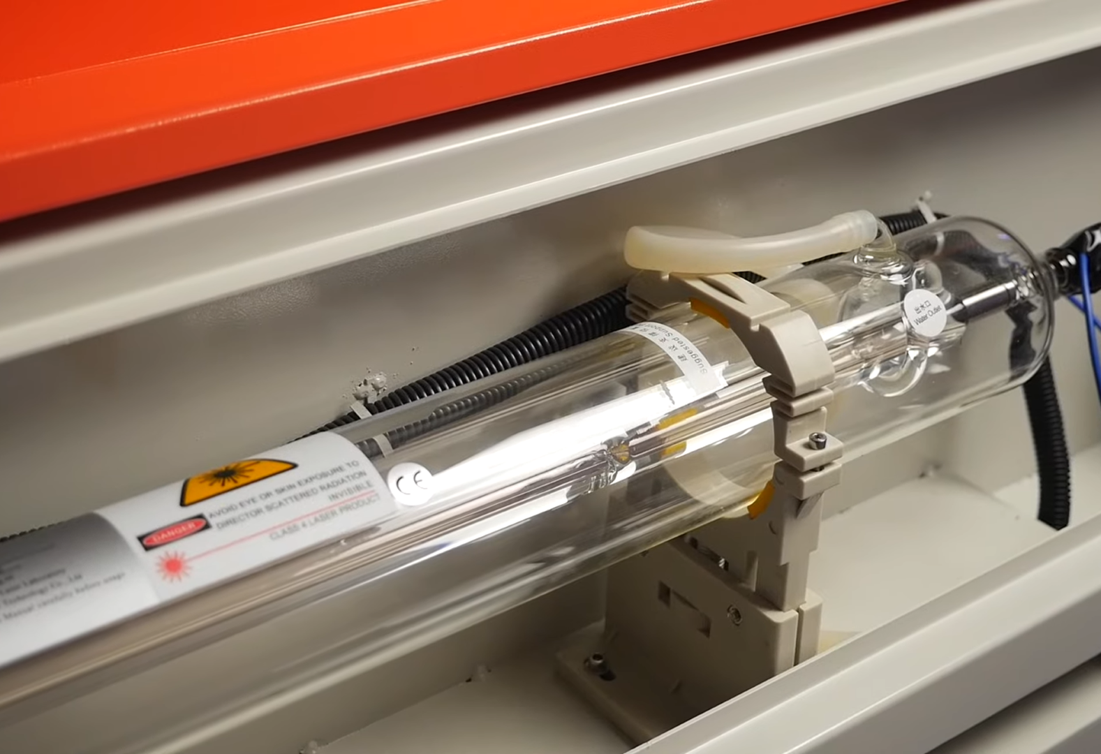 Мы установили универсальные крепления для лазерной трубки, которые оборудованы регулировочным винтом и измерительной шкалой, что позволяет производить их быструю замену вне зависимости от диаметра/мощности трубки и оперативно осуществлять юстировку станка.