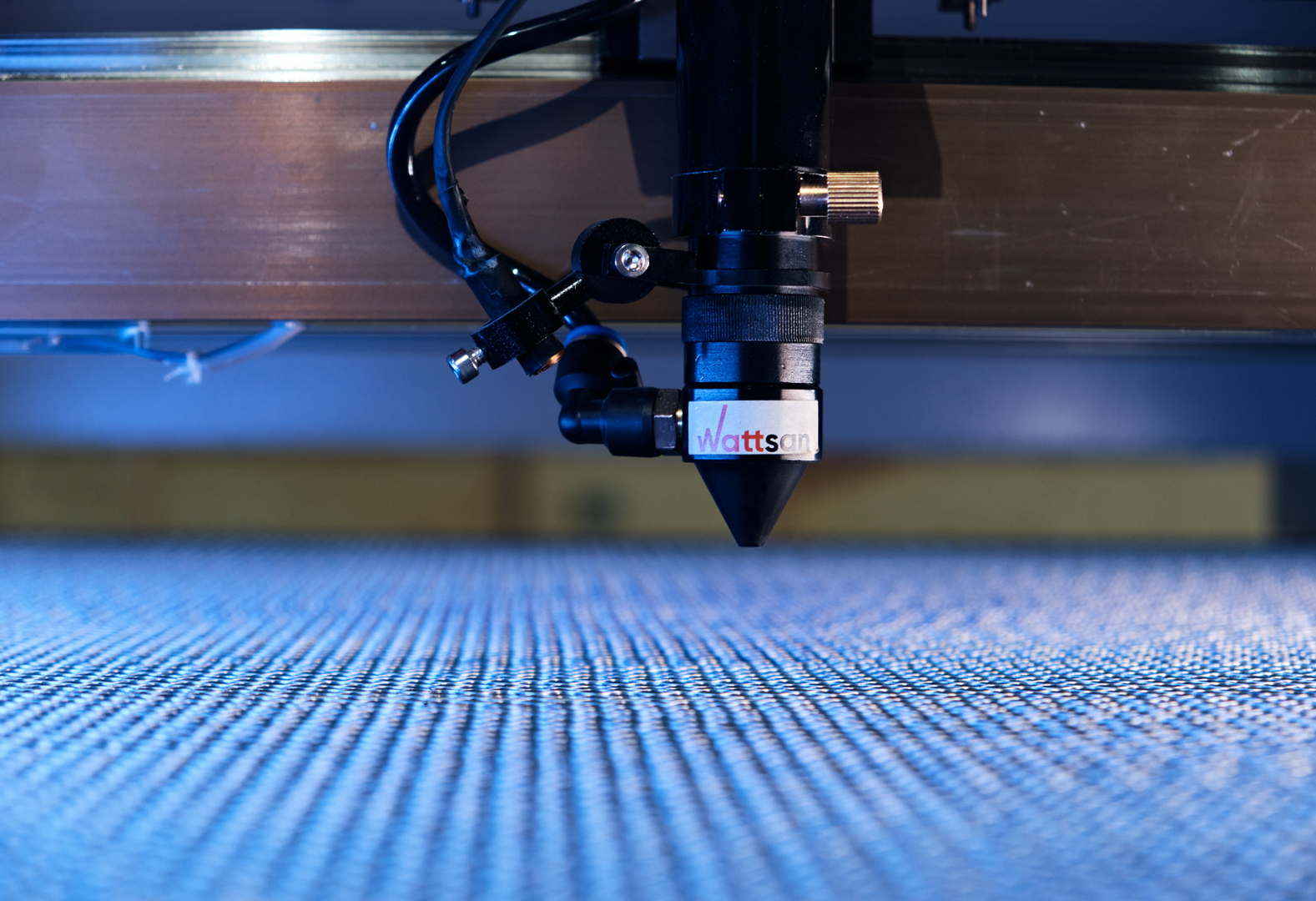 Портал несет основную нагрузку во время работы, особенно во время гравировки или быстрых холостых перемещений. Порталы на лазерных станках Wattsan изготавливаются из алюминия толщиной от 3 до 5 мм и имеют дополнительные ребра жесткости, что обеспечивает долговечность работы.