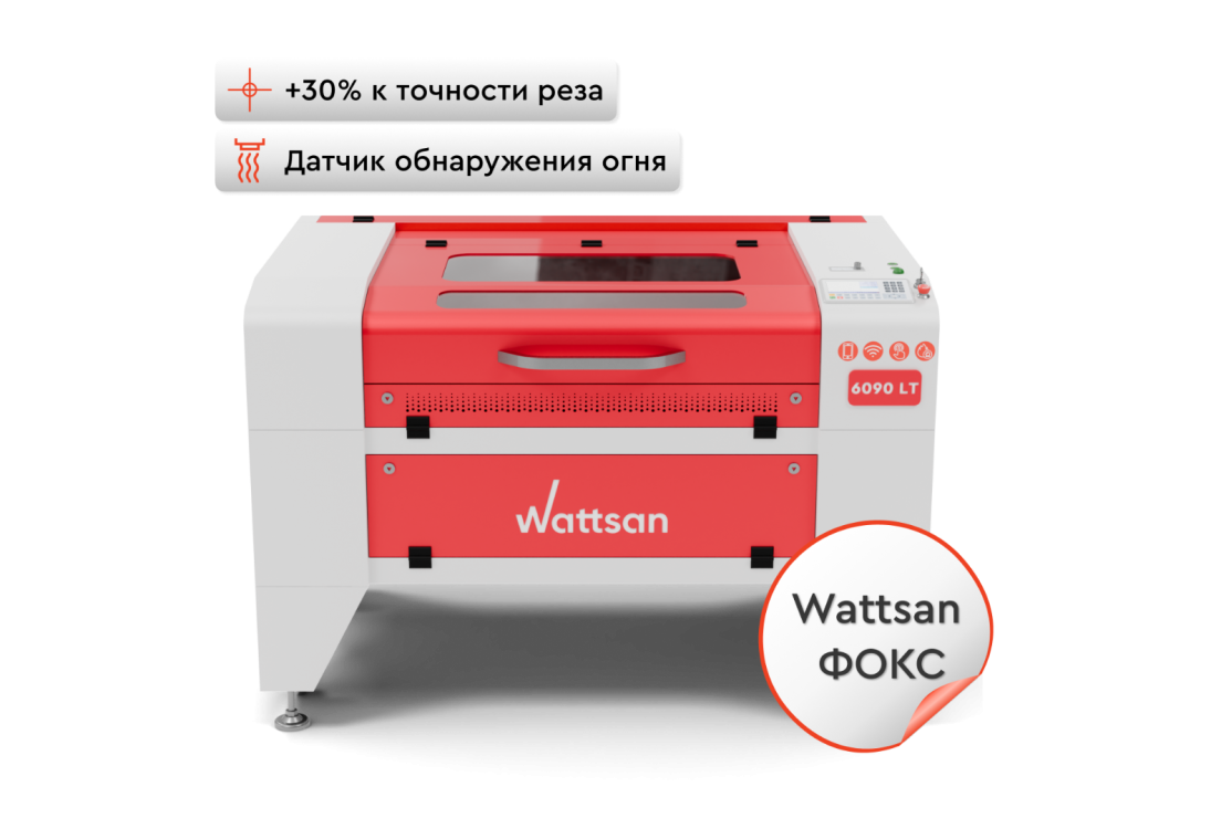 Wattsan 6090 LT — универсальный CO2 станок для резки и гравировки с рабочим полем 600x900 мм. Позволяет резать большинство материалов без дополнительного раскроя, экономя время и снижая издержки.