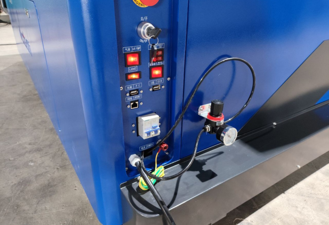 - Синхронизирует подачу воздуха с лазерным источником: компрессор работает только во время реза.